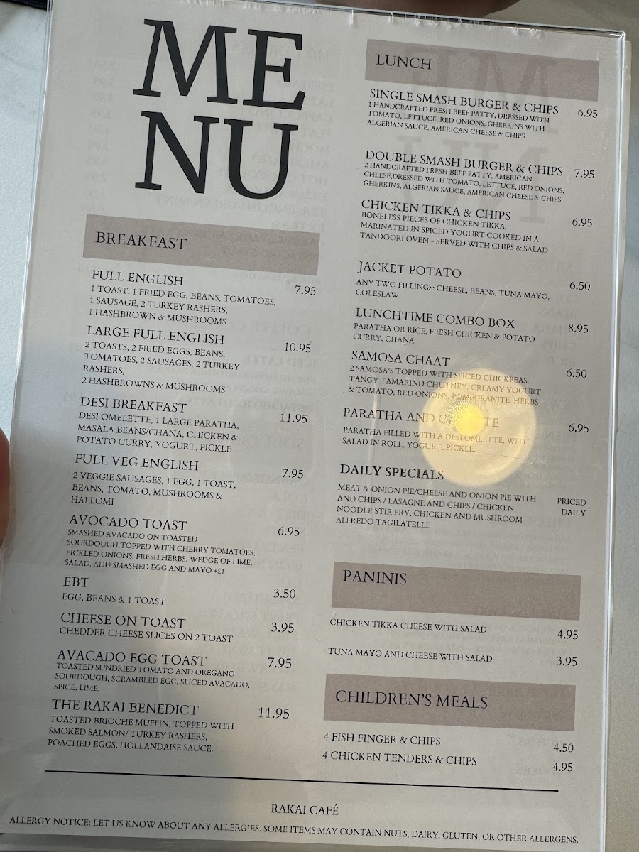 Rakai Cafe Menu